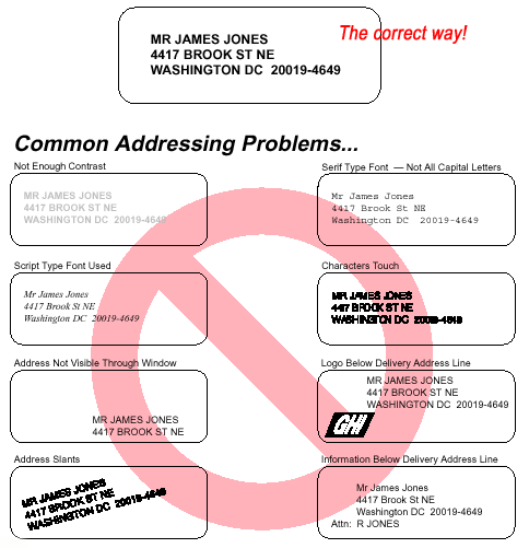 The correct way (and incorrect ways) to address envelopes according to the U.S. Postal Service: For further information on addressing, click HERE.